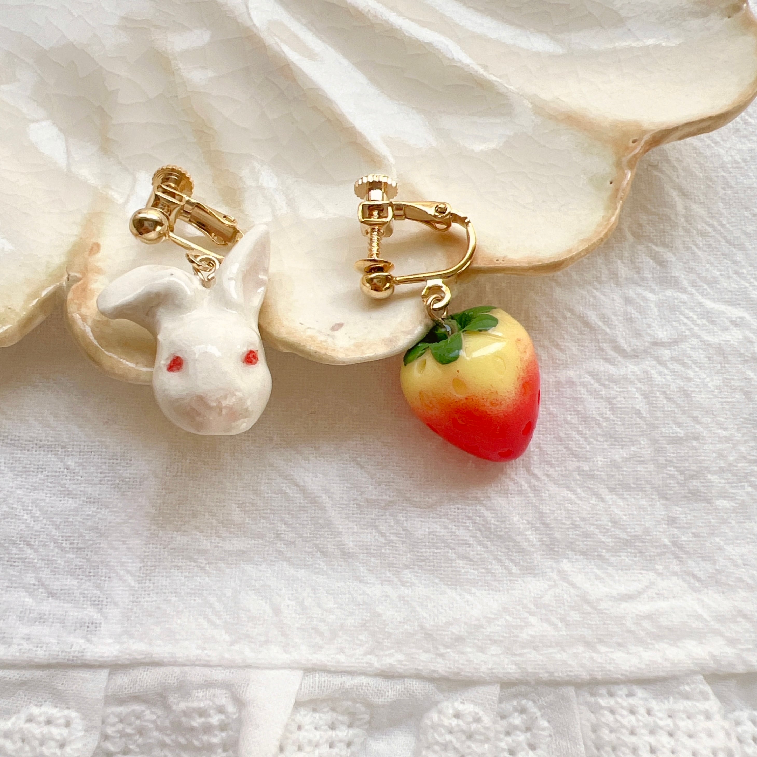 白うさぎと苺のイヤリング