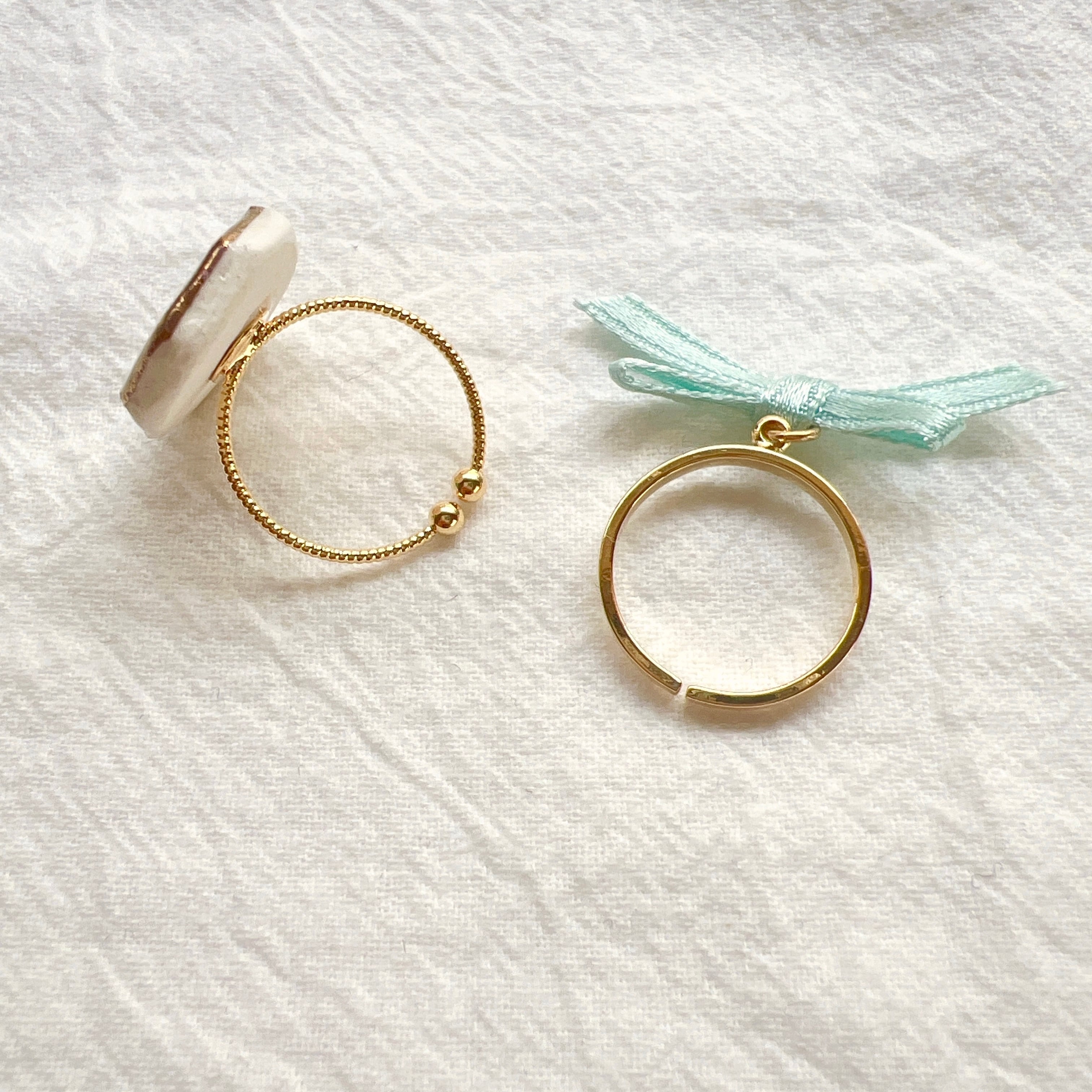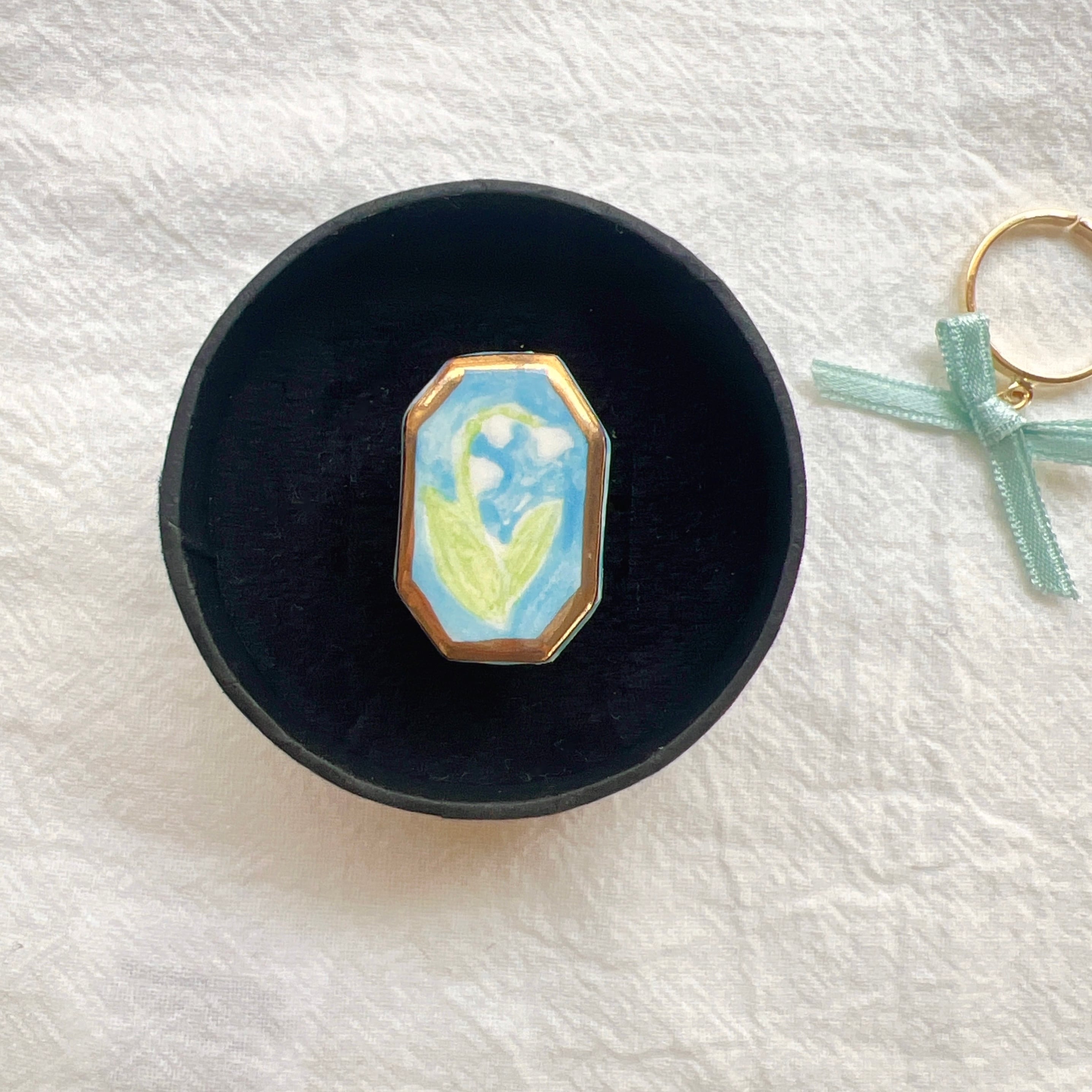 手描きのスズランとリボンリングの2点セットです
