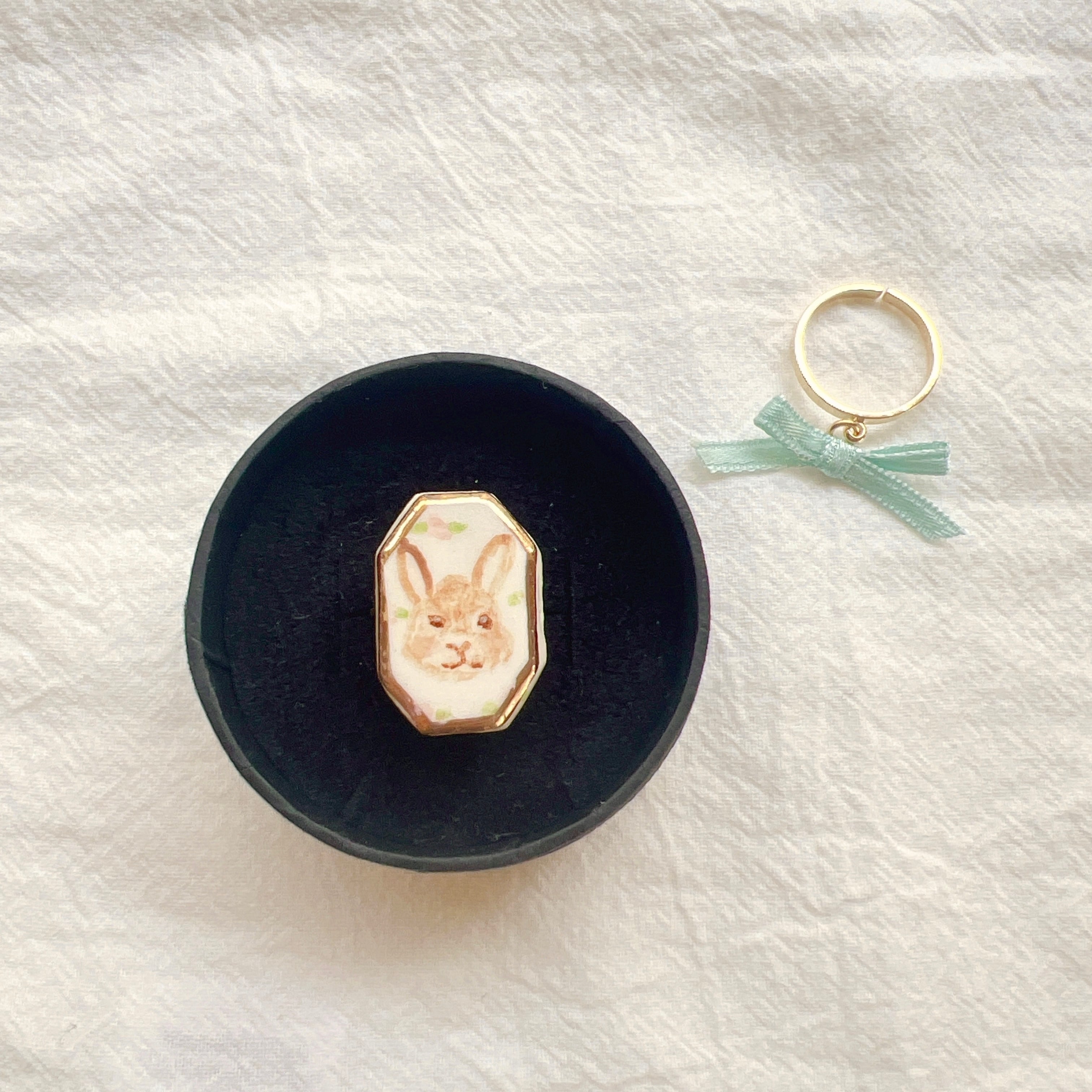 手描きのうさぎとリボンリングの2点セットです