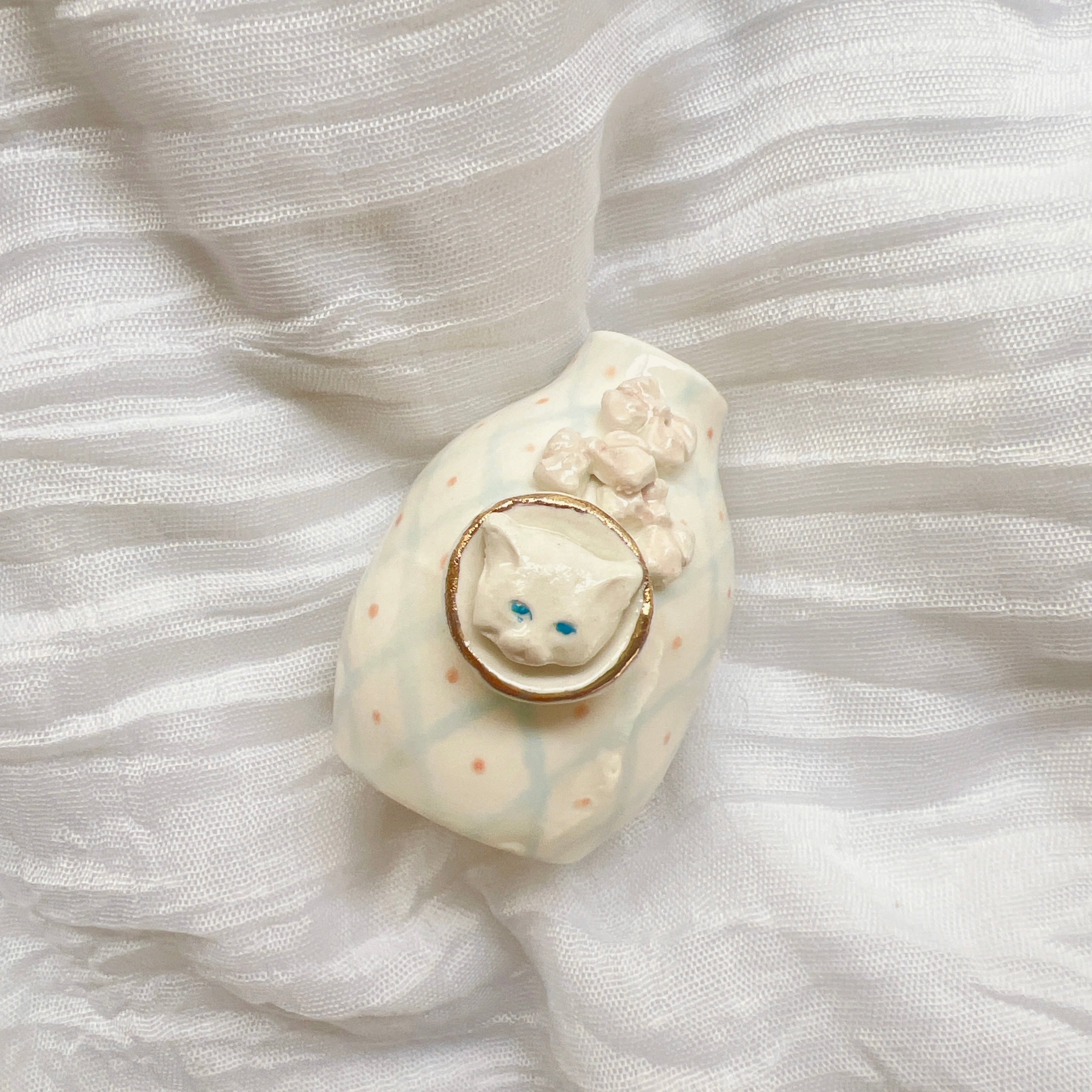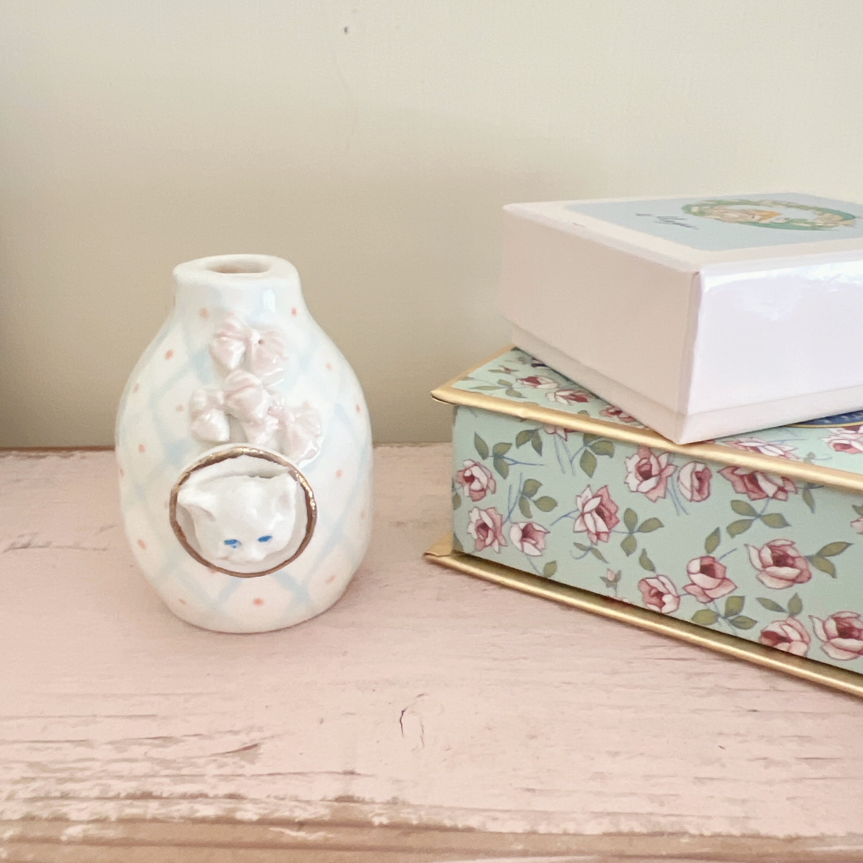白猫のデザインが特徴のミニ花瓶は、お部屋にほんのり癒しを添えてくれるアイテムですꕤ